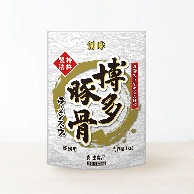 骨粉入りの豚骨ガラスープをベースに、厳選した背脂・にんにくを加えて風味よく仕上げた本格博多豚骨ラーメンスープです。お湯でうすめるだけでとろっとした口当たりに仕上がります。濃厚な豚骨の旨味と背脂の甘みをぜひご賞味下さい。