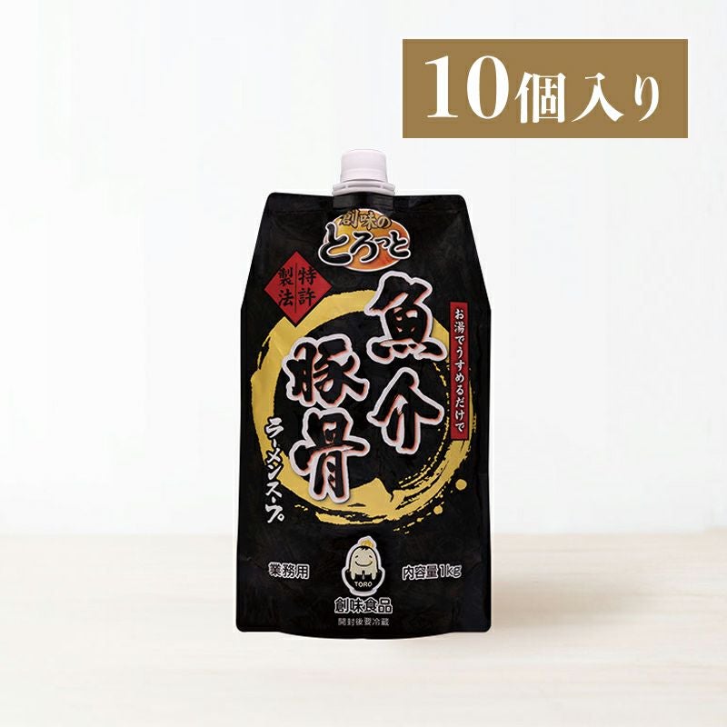 濃厚で旨みたっぷりの豚骨スープと、厳選した煮干・さば節の風味が特長の魚介豚骨ラーメンスープの素です。
