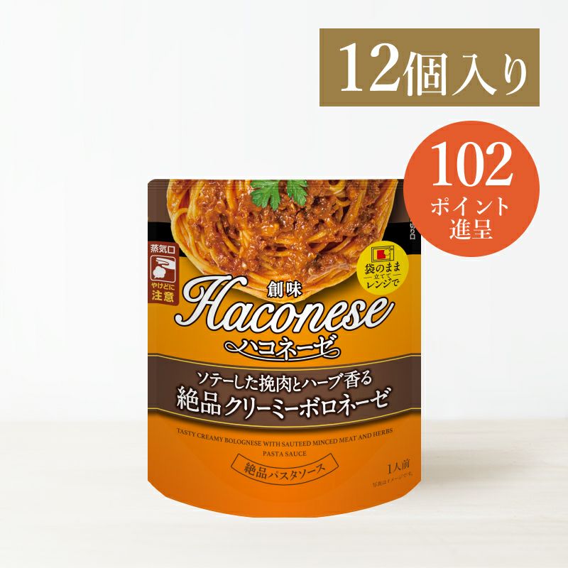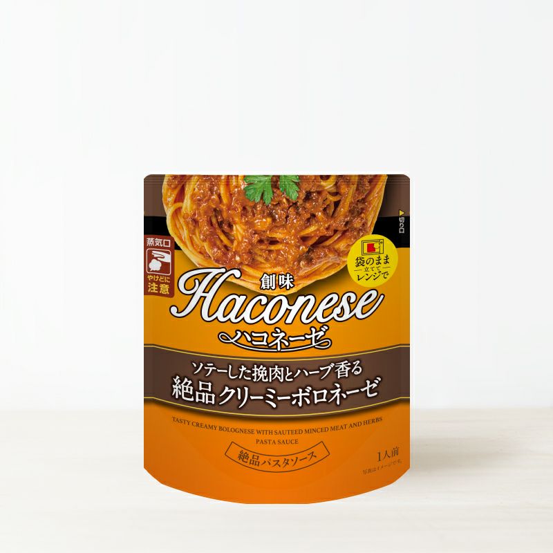 創味食品が誇る人気のパスタソース・ハコネーゼは、電子レンジで1分温め、ゆでたてのパスタにかけるだけの簡単調理。3年以上の開発期間を経て完成したこのソースは、プロの料理人向け開発チームのノウハウを凝縮。おいしさを最優先に、市場にはないこだわりの逸品を、安全かつ高品質でお届けします。パスタ料理を一味違う特別なものに変えてみませんか?