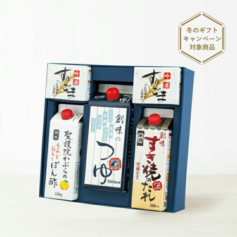 【U-38】創味のつゆ・吟選すりごま・すき焼のたれ・聖護院かぶらのもみじおろしぽん酢セット